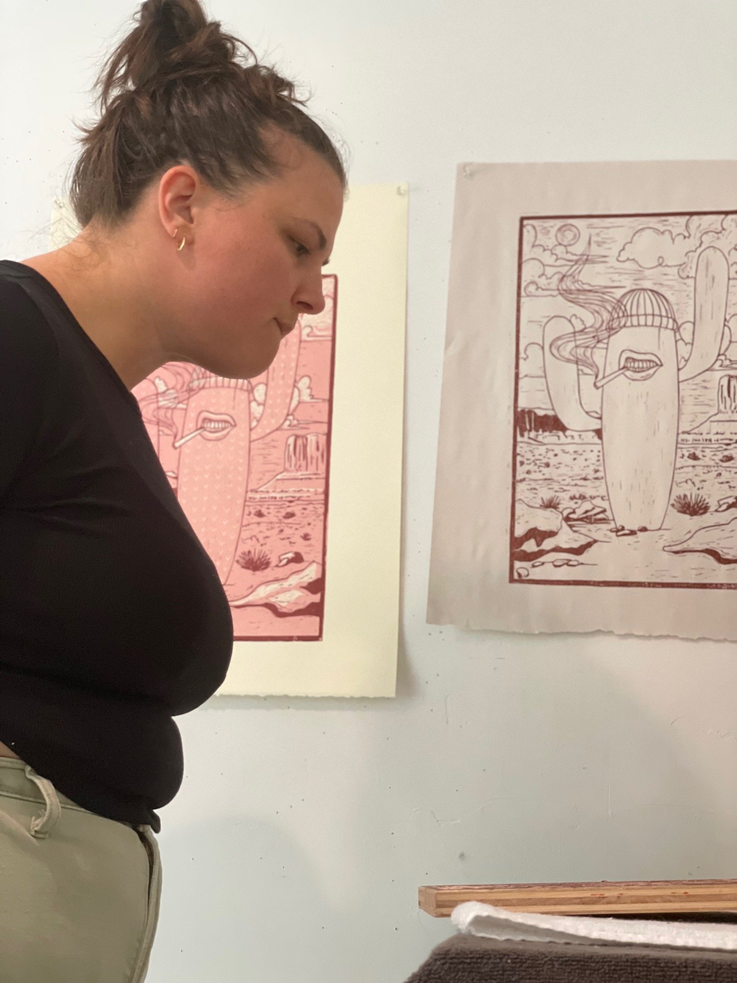 The Asylum started as a collaborative publishing press focusing on woodcuts and etchings. Started by Master Printer Alex Giffen in 2020 after a big career in fine art print publishing, the asylum provided access to museum quality printmaking for emerging artists from all over the states. Alex hosted three all-inclusive residencies with artists of entirely different backgrounds and mediums. She also co-created a collaborative print project to raise over $10k for women’s reproductive rights, right after the overturning of Roe v wade. Alex self-funded all operations through the sale of her own work and various side jobs.