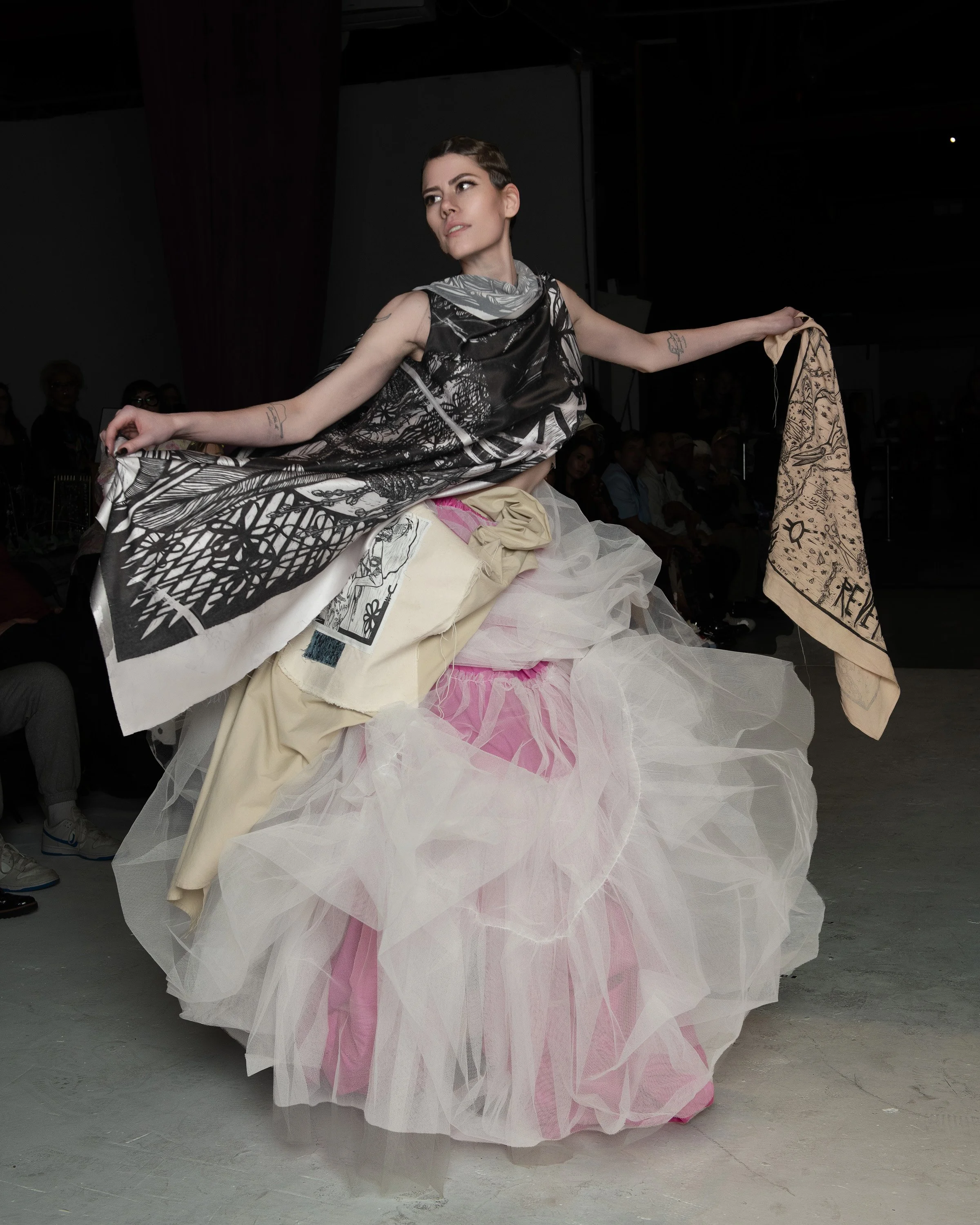 In January, The Asylum made some changes. From the inside, we still bleed printmaking and it’s still all about the litho ink and traditional techniques, but on the outside? It’s a whole new Madhouse. Working collaboratively is no longer the front runner, carving for margins and flat fibers is in the past. The Asylum is drafting patterns, constructing garments and catwalking the runway, bring traditional technique printmaking to a new audience.