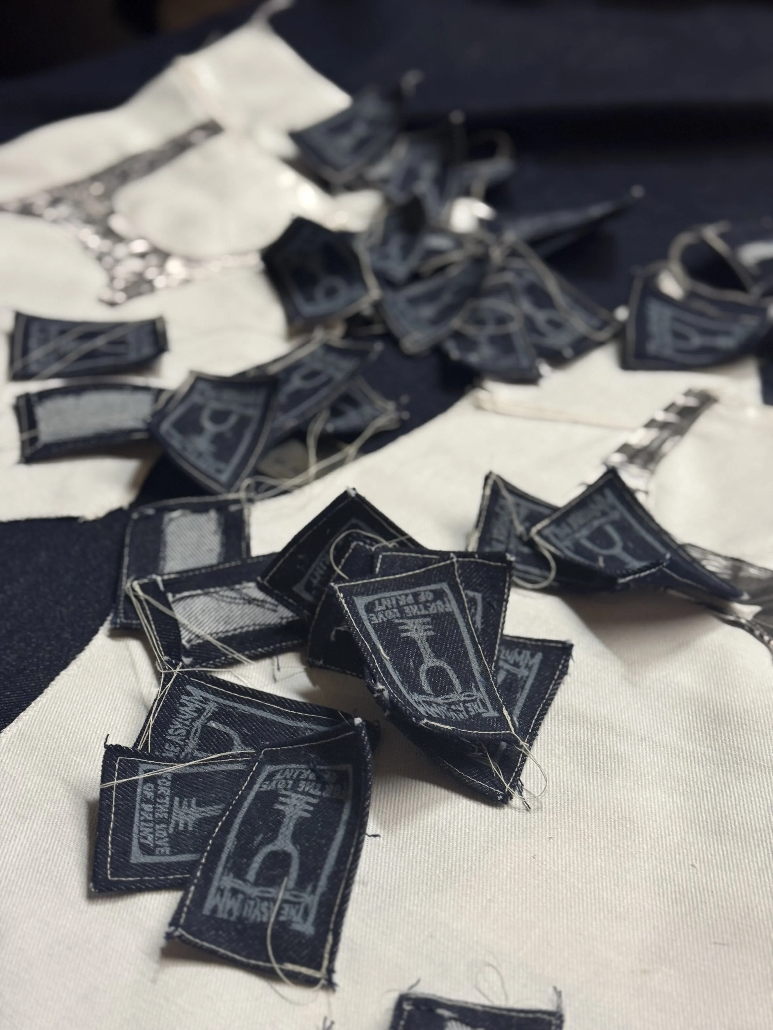 The woodcuts are still hand carved and printed on the presses near and dear to the soul Of the Asylum, but The Asylum will now focus on printing bolts of pfd bull denim and other delicious fabrics and using these yards to make one-of-a-kind garments of all kinds. customs and commissions welcome.