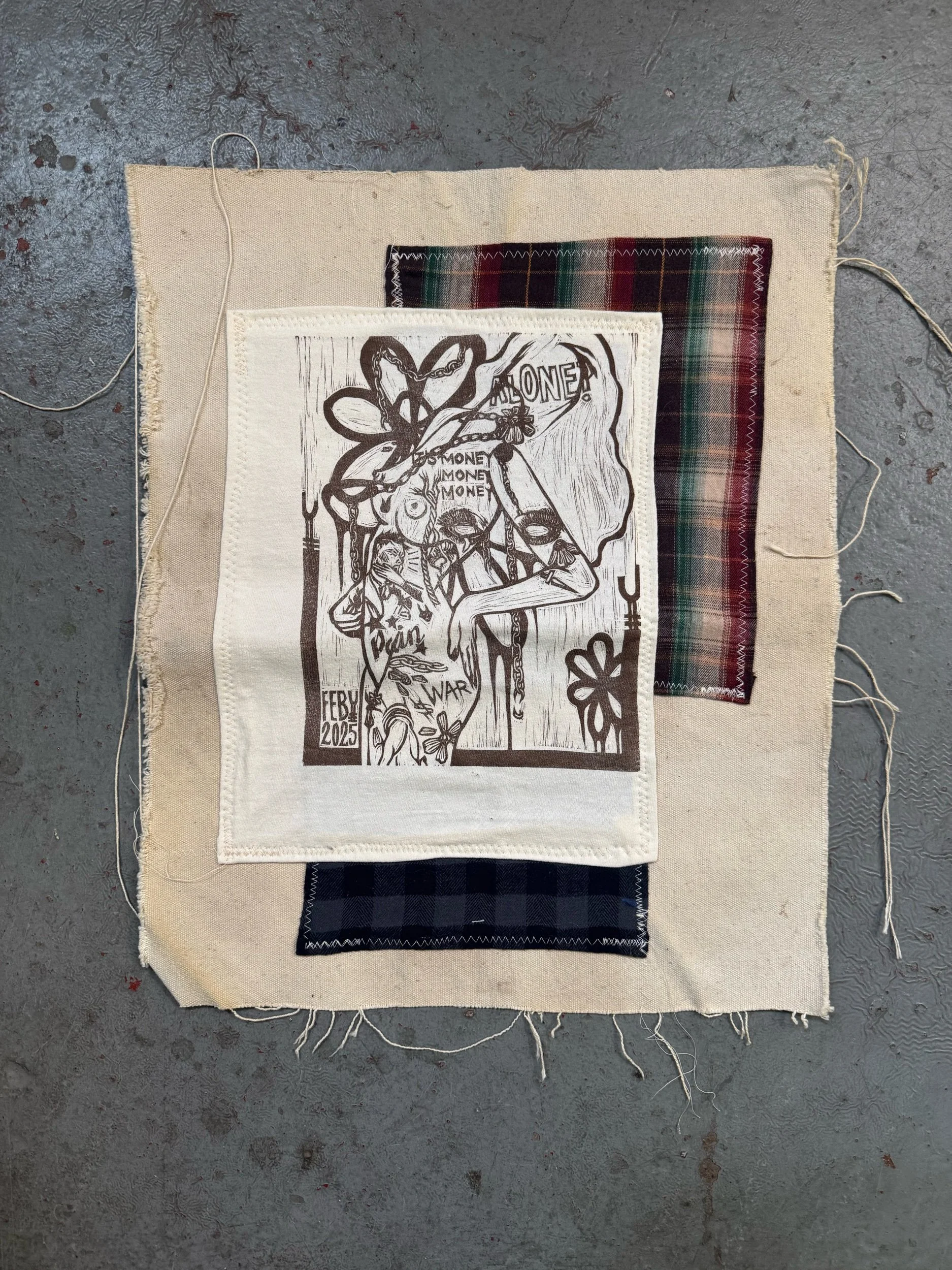 Back patch made entirely from scrap materials ft scrap woodcuts. Each one is completely unique, sewn to heavy canvas and ready 4 battle.
