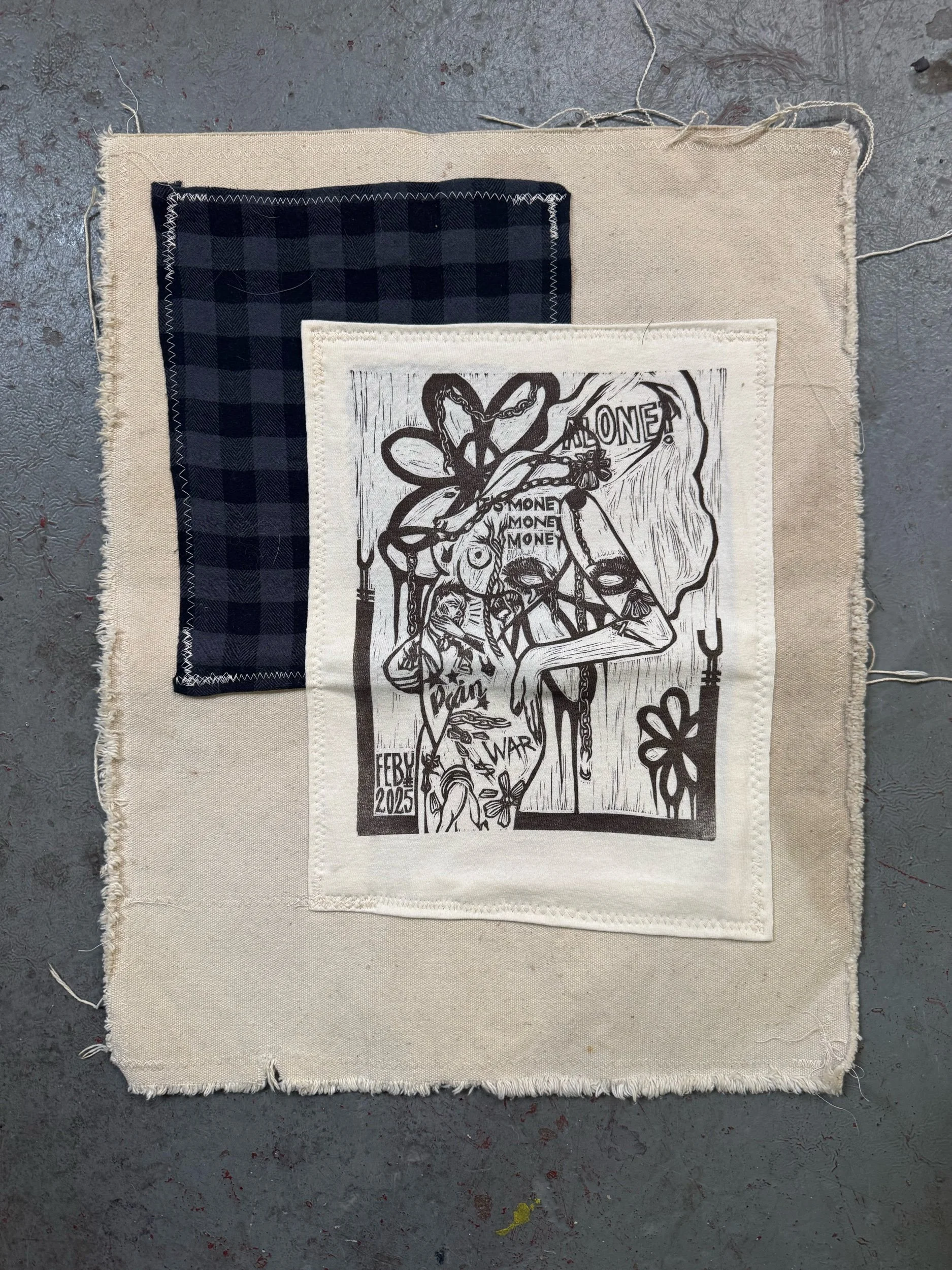 Back patch made entirely from scrap materials ft scrap woodcuts. Each one is completely unique, sewn to heavy canvas and ready 4 battle.